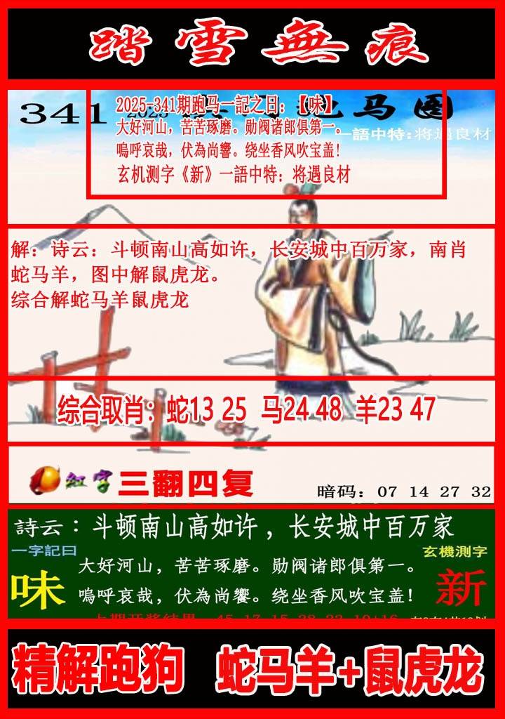 341期汤祷桑林【2 肖4 码】铁算盘发表 【汤祷桑林】